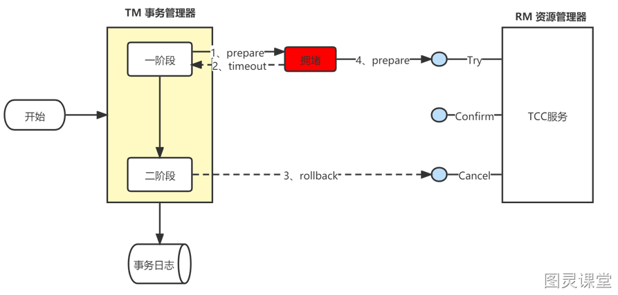 TCC的执行流程可以分为两个阶段,分别如下: