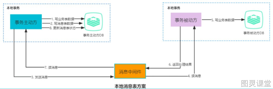 ① 事务主动方在一个本地事务中处理业务和写消息表操作