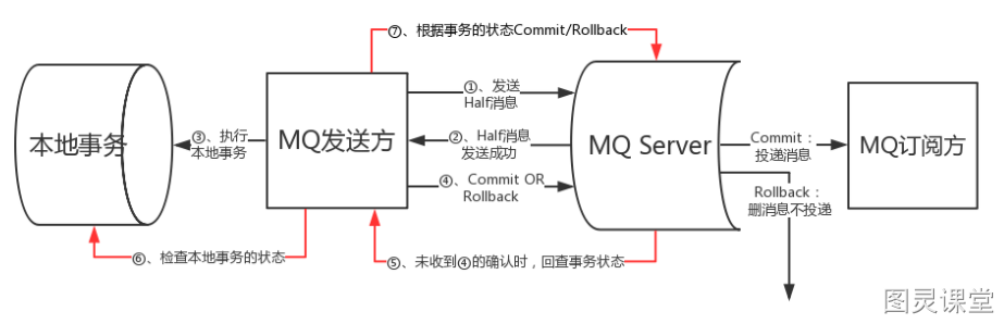- 最终步骤:MQ Server基于 commit/rollback 对消息进行投递或者删除